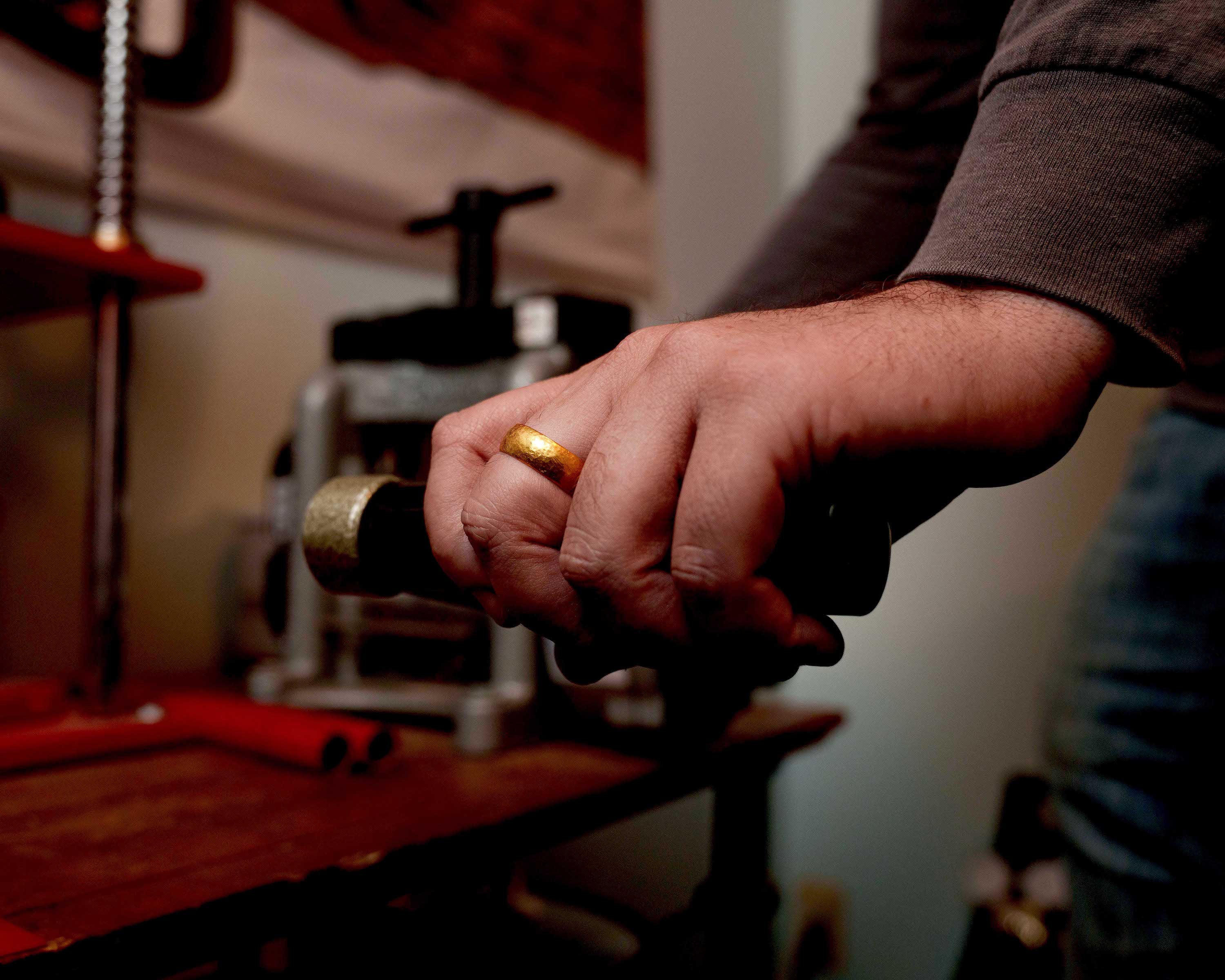 We use fire and brute force to forge pure gold into solid rings that will last lifetimes.