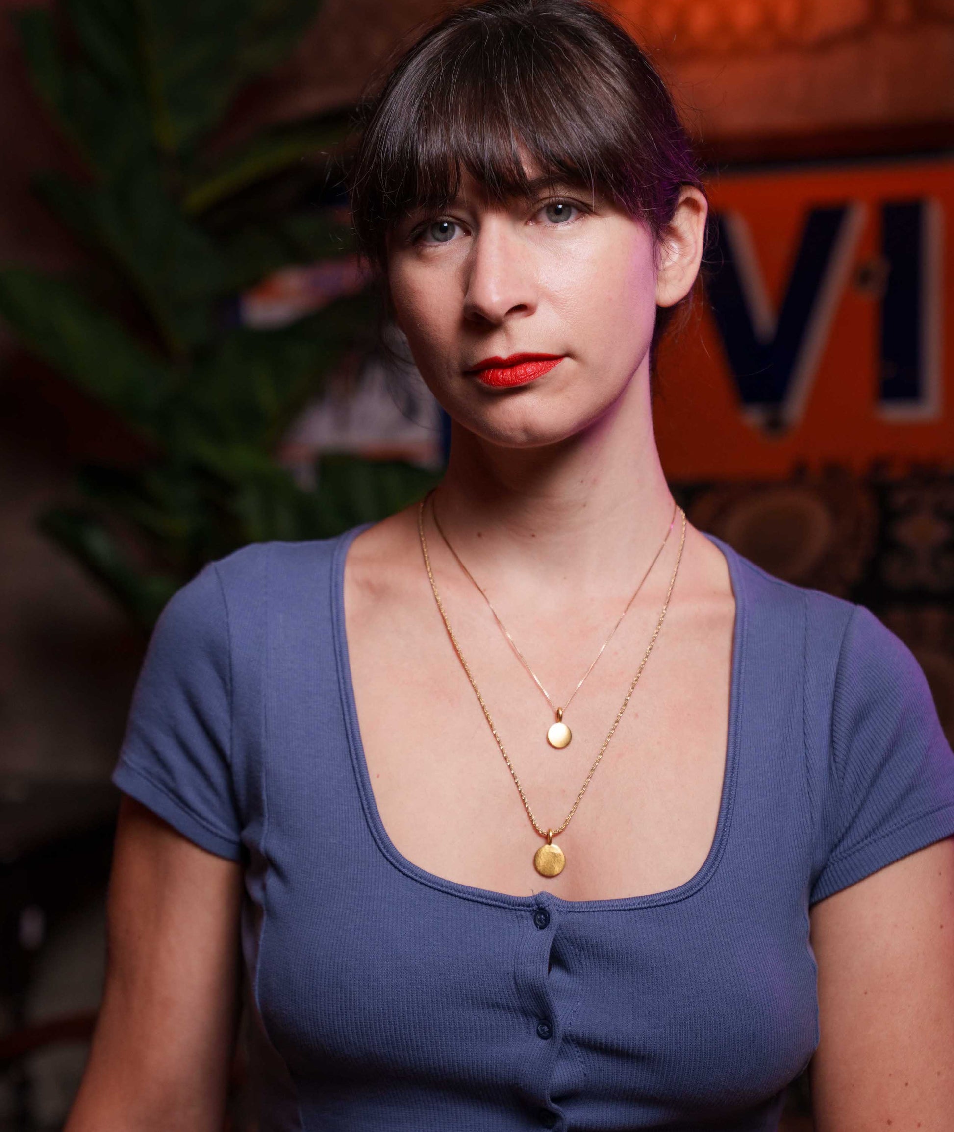 This hammered disc pendant features a coin-shaped design crafted from pure 24k solid gold. Its hammered texture adds subtle depth while maintaining a minimalist aesthetic. With a pleasantly substantial weight and thickness, this pendant offers an elegant yet durable accessory that draws attention through refined simplicity and unmistakable quality.