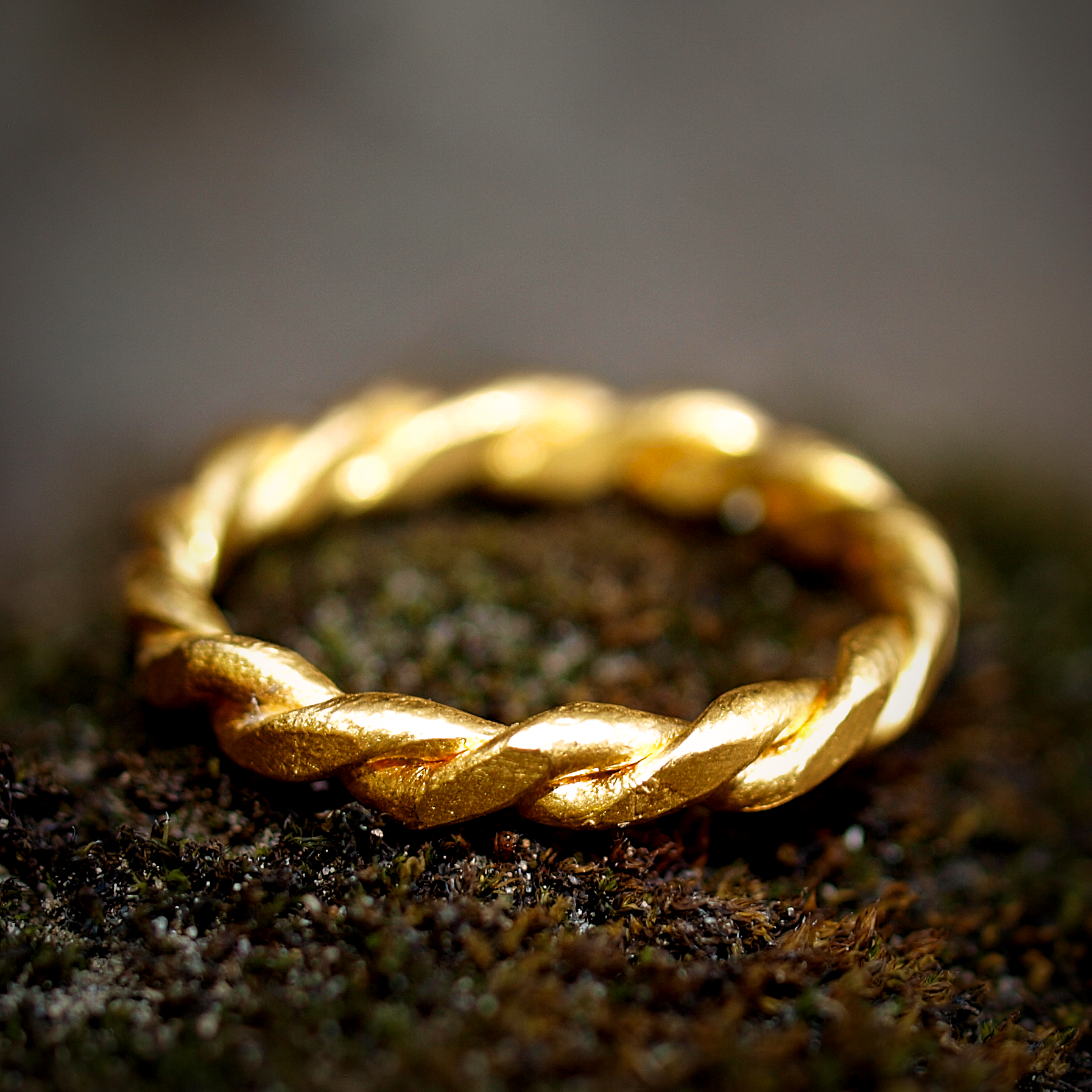 Braided Twist Rope Ring - Handmade Solid 24k Gold Twisted Band