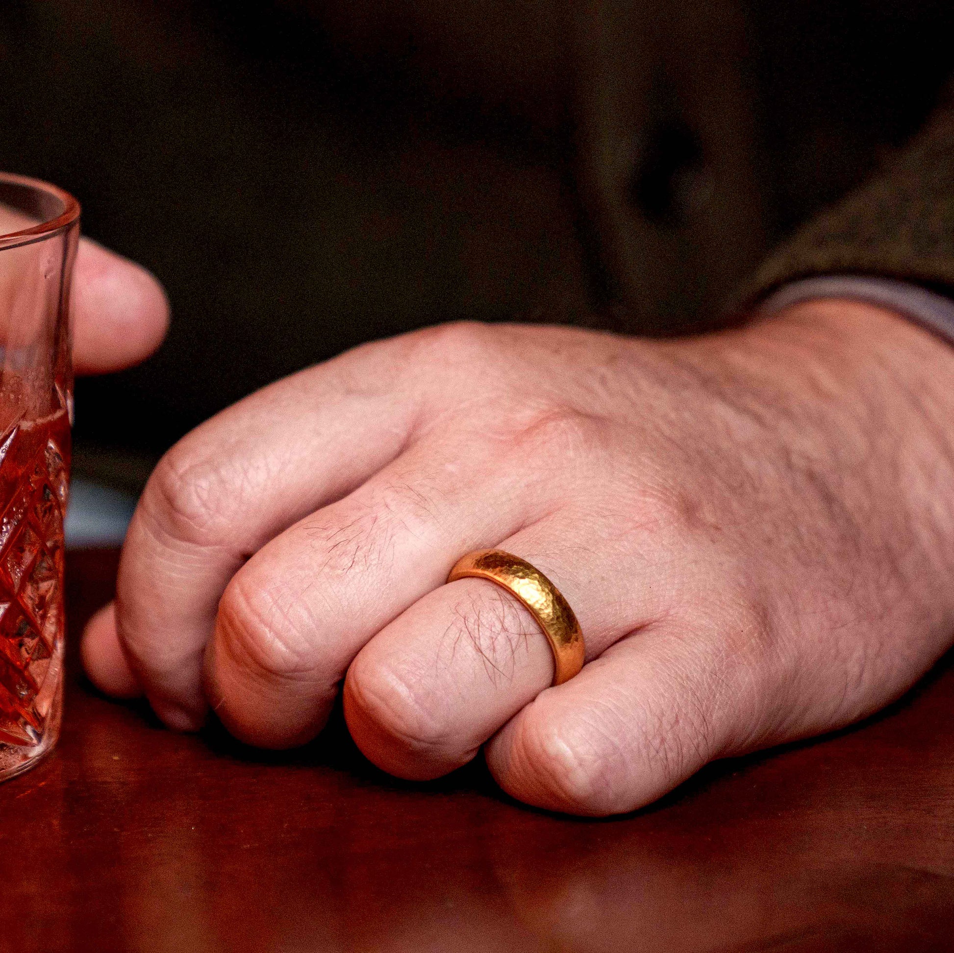 Classic Comfort Fit Gold Band - 24k Pure Gold - Hammered Finish